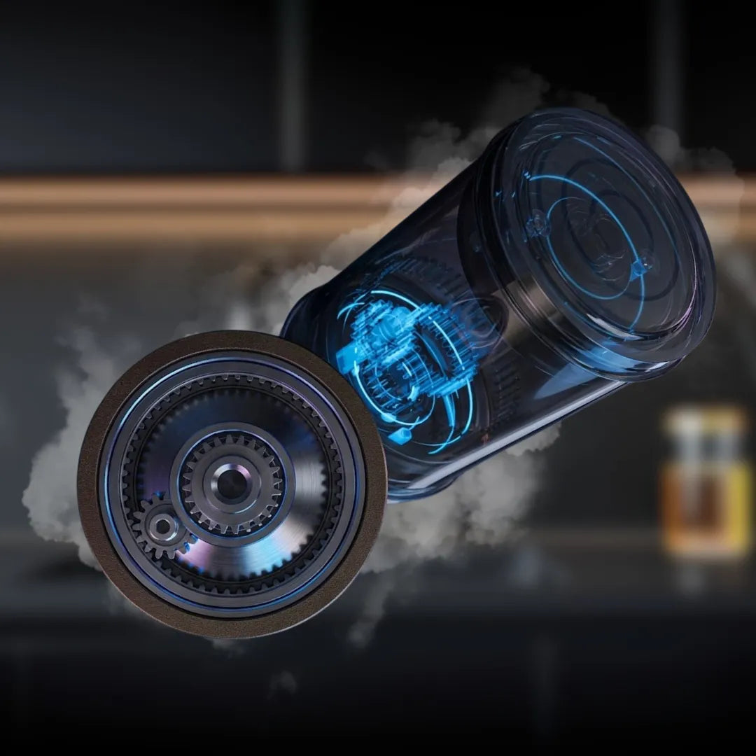 Technisch sind beide Varianten identisch und liefern das gleiche, perfekte Schleifergebnis. Der Unterschied liegt rein in der Optik und Haptik des Gehäusematerials, damit du das Design passend zu deiner Küche wählen kannst.